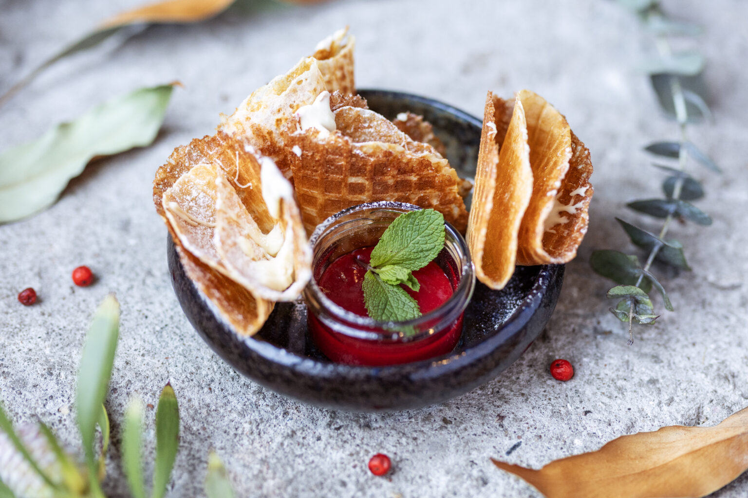 extra sauce 1€ICE CREAM WITH BERRIES AND WAFFLE (G, L)